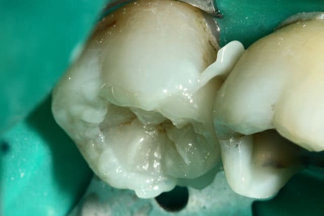 > Photo 1. Moi: "Voilà pourquoi il vous faut un onlay."