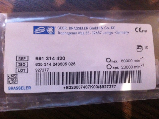 Fraise blanche à polir en ceramique de chez Komet. avec les retouches sont propres.