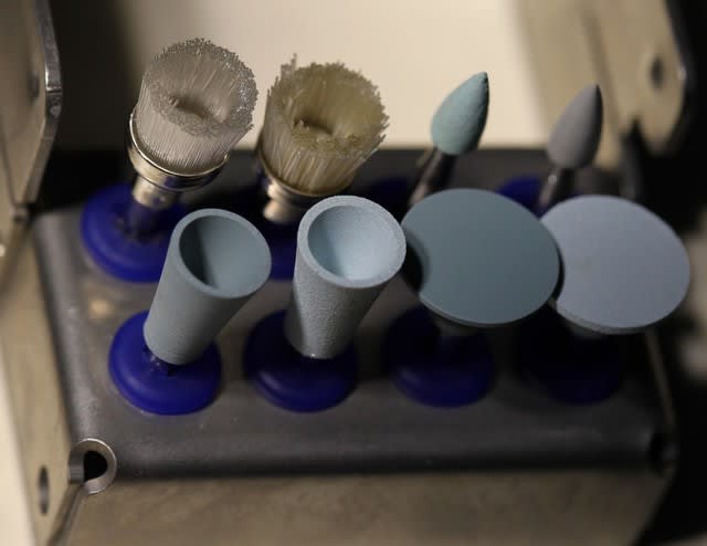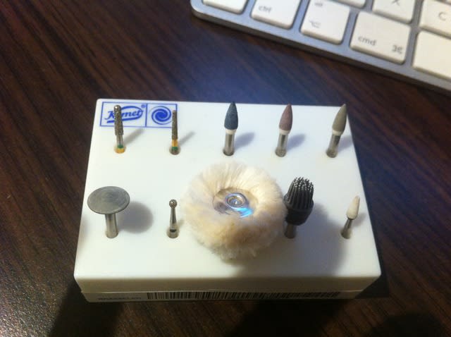 Fraise blanche à polir en ceramique de chez Komet. avec les retouches sont propres.