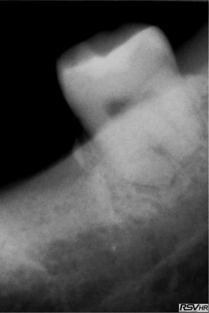 une racine le morceau en distal e je l'ai enleve avant le scan, la radio date du 21.1 et le scan du 14.3.... je ne pense pas avoir de pano d'ensemble post extractionnel.