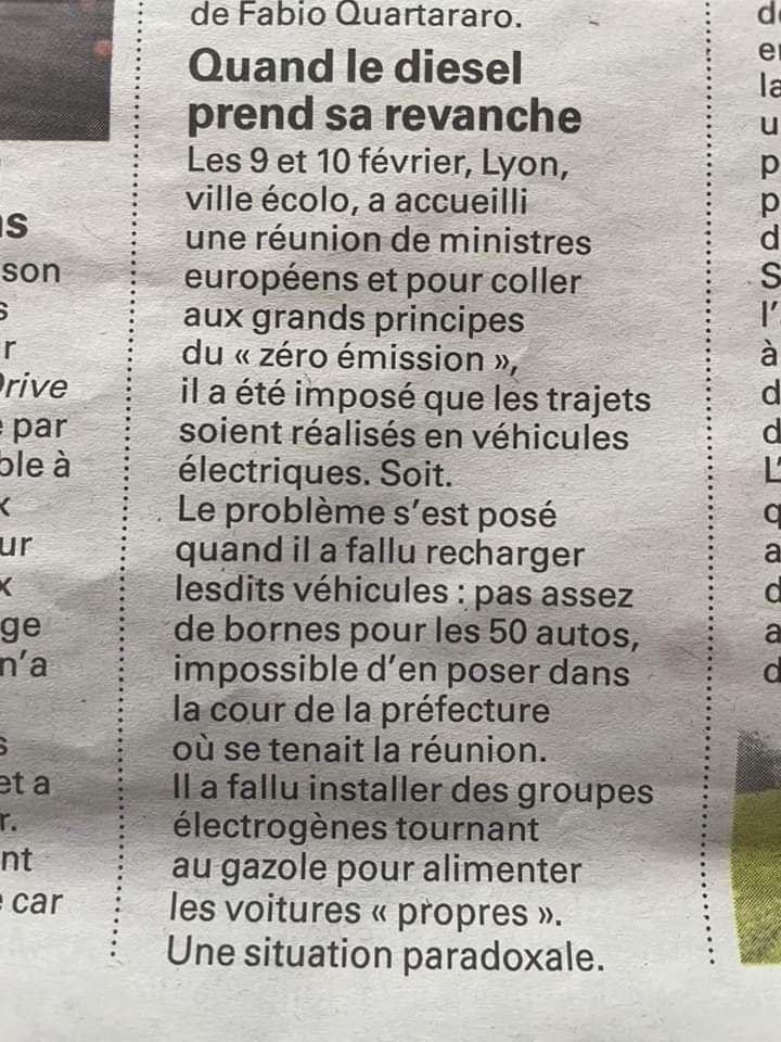 > > Je poursuis ma réponse concernant le prix des voitures électriques. Oui il y a