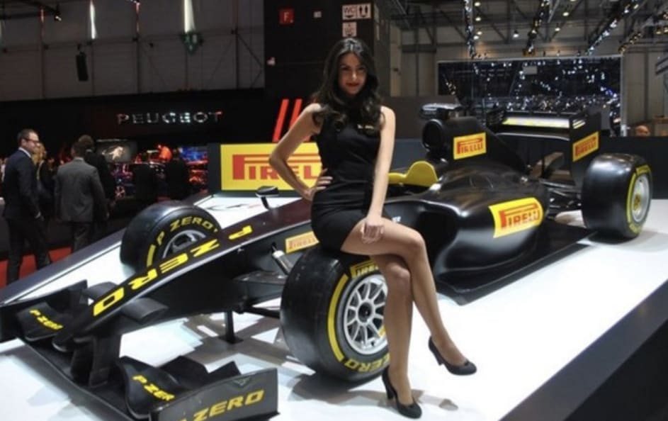 Et celle-ci qui pose sur des pneus avec une tenue au raz des fesses ? Mais où va-t-on ? Est-ce que ça vous viendrait à l’esprit messieurs de vous faire prendre en photo avec une tenue au raz des testicules , assis sur un pneu de F1 ?