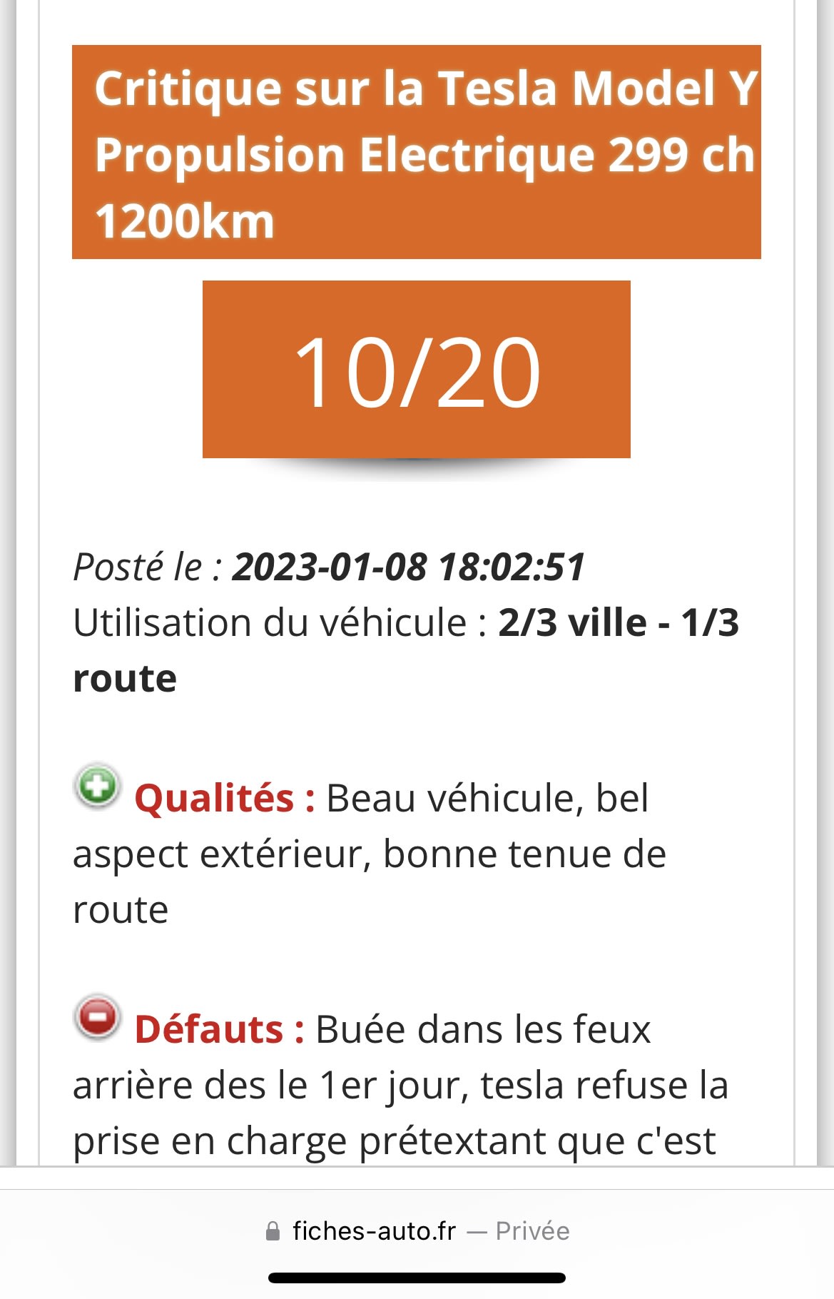 On remarquera une critique de l’ après vente qui est courante pour les Tesla