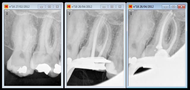 90 mn 2 molar endo + extrac 38. Un peu lent du à la difficulté à anesthésier (30 mn). les crochets apicaux traités comme si ils n'existaient pas avec le r25.