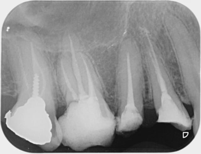 Ton matériau d'obturation est confiné dans l'endodonte, je ne vois pas de dépassement de gutta, tes cones sont bien ajustés, je ne vois pas de déchirement apical.