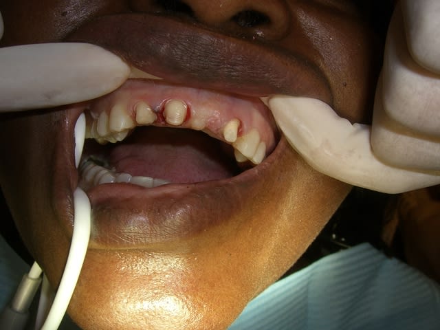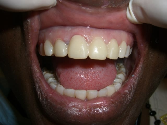 Ce matin, je réalise les tailles et le provisoire pour un bridge de 12 à 22. La patiente, 45 ans, origine ethnique afrique noire, femme d'ambassadeur, soucieuse de son esthetique. Elle a la 21 absente et possédait un petit bridge en extension 22/21, réalisé au Bénin, très inésthétique. Sa demande était donc esthétique et ne souhaitait plus avoir son diastème entre 11 et 21. Je lui parle de l'implanto et du bridge. Le choix s'oriente donc vers une solution de bridge 12 à 22 le tout sur dents vivantes... Evidemment je valide l'esthetique à l'aide de wax up réalisés par le labo avant de me jeter à l'eau. La patiente ravie, on commence. Lors de la taille, j'effracte la corne pulpaire de la 22 :(. Il doit peut être resté 0,001mm de dentine car je vois plus que bien un petit point qui devient rouge, "mais rien ne coule", et lorsque je passe un petit brush, c'est sec. Illico presto, j'applique du prime et du bond, puis une goutte de composite flow...a la fin de mes tailles, sur les trois dents vivantes, après avoir mis le fil, je fais la même chose, prime+bonding. Puis je réalise à l'aide d'une clef en silicone issu des wax ups, le provisoire ( voco structure). Très beau résultat (je reste modeste;)), mais le hic, je n'arrive pas a le desceller...et j ai peur de trop insister et de tout casser...l'heure tourne! Avec une fraise flamme diamenté puis tungstène, je dégage les embrasures et polie les limites directement en bouche. Après réflexion, je pense que c'est dû à ma couche hybride faite à l'aide du primer+bonding...qu'en pensez-vous? Aurai-je dû mettre de la glycérine ou vaseline avant de faire le provisoire? Autre question, pensez-vous que mon coiffage pulpaire a des chances de fonctionner ou le traitement de racine sera obligatoire? Pensez-vous que je peux envisager un bridge en eMax où le risque de casse est important ( guide antérieur de la patiente correct)? Si je peux faire de l'eMax, je souhaite d'abord poser le bridge en provisoire ( au cas où problème sur la vitalité de la 22)...quel produit utiliser?