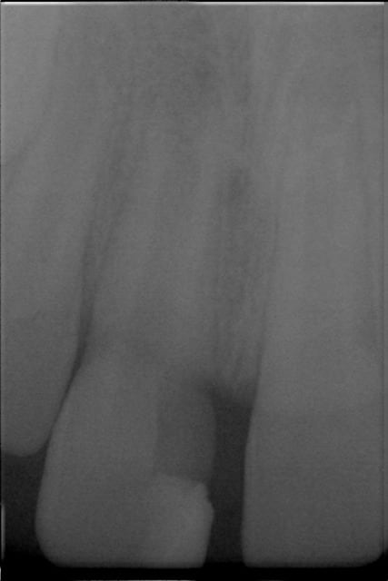 A la radiographie, l'image est peut être asymétrique entre 11 et 21 : la dent fracturée me semble avoir un canal plus large et un apex plus ouvert.