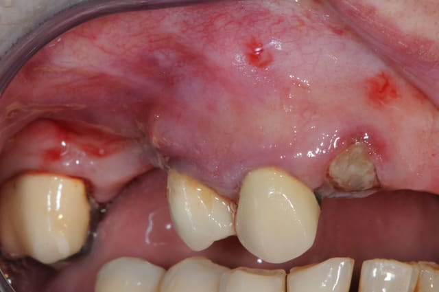 14 était fracturée et il y avait une infection +++ au niveau de la 15 avec perte de la table vestibulaire.