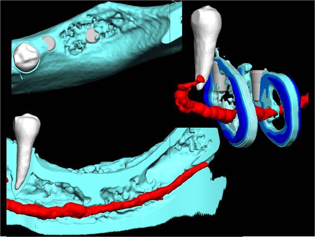 Tu peux le voir comme cela ou tient si j’ai un cas similaire quel sont les solutions. ..distraction, greffe de pariétal, greffe allogène, PPA, rien…. Un praticien ma demandé de faire un guide pour une réhabilitons complète mandibulaire avec 2 implants position 36, 46 de 10mm. Ma réponse mais Docteur cela ne passe pas « si, ils seront bi-cortical » (l’apex de l’implant devait éffracter légèrement la zone ou passe l’artère linguale). Je ne pense pas que cette démarche soit courante, qu’elle se renouvellera fréquemment mais maintenant je sais qu’elle est réalisable.
