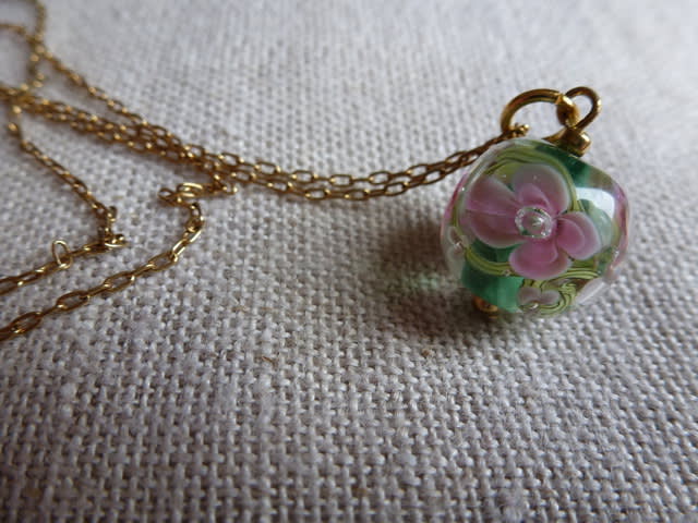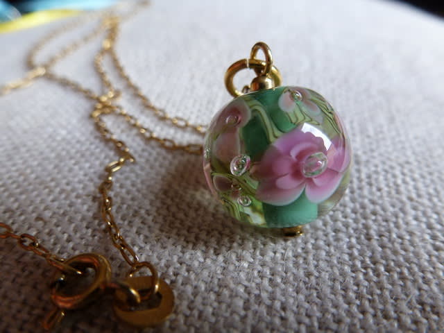 cette fleur est une perle de verre soufflé par une gonzesse qui habite à Dublin, en Irlande et ses perles sont juste Ma-gni-fiques et là, avec des perles pareil , c'est un pur kiff au montage et à photographier.