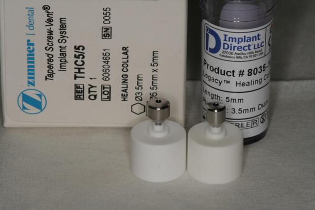 note: j'ai toujours utilisé des pièces de la marque des implants posés, jamais de mélange et je tiens à jour toute la traçabilité des composants utilisés pour moi, comme pour mes patients qui se voient remettre, le jour de la pose de la prothèse d'usage, leur passeport implantaire complet...