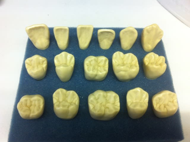 un ami ancien prothésiste m'a offert des dents en résine, c'est ma base de travail.