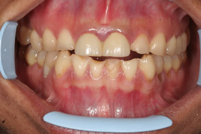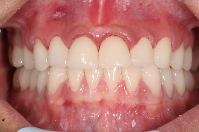 Terminé hier soir, 6 demi journées de travail, pas de provisoire sauf les centrales qui seront reprises quand la gencive sera cicatrisée. Toutes les dents pulpées sauf deux 6 qui ont pas supporté et ont du être dévitalisées car partaient en pulpite.