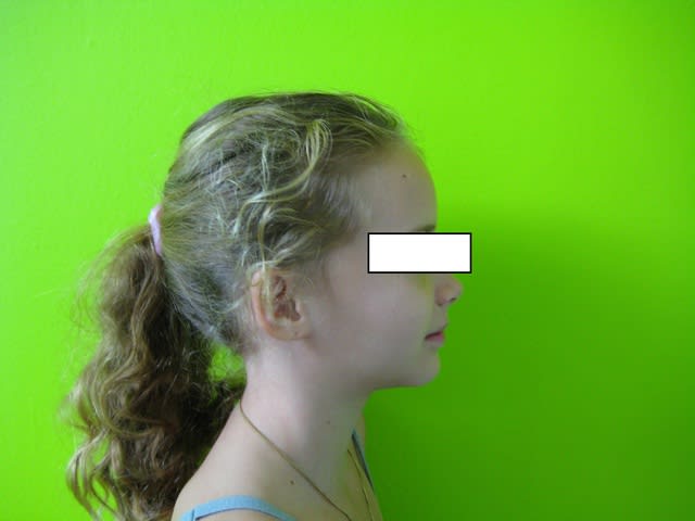 Elle présente une linguo-version et une égression des incisives maxillaires et mandibulaires. Le truc c'est que les racines de 11 et 21 semblent bien positonnées sur la télé de profil, alors que les faces vestibulaires sont très lingualées.