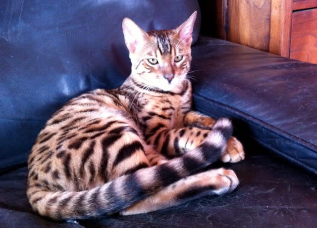 Un vrai chat-léopard qui fait la joie d'un cher ami.