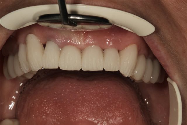 Il semble évident que ceci ne peut être traité que de façon globale, mais la difficulté est de le faire comprendre à la patiente, qui veut seulement un "sourire".