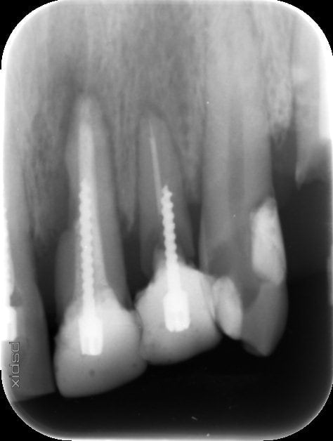 Non la question était: peut ton raisonnablement intégré la 21 a un bridge (l'étendue du bridge n'étant pas précisé)? pour répondre à cette question je pense que la radio est plus que suffisante. La valeur de cette dent comme pilier pour un bridge est très mauvaise. Résorption externe semblant aller presque jusqu'au canal, suspicion d'infection peri-apical, reprise d'endo probablement impossible ne serai ce qu'a cause du screw post indémontable sans risquer la fracture ou l'avulsion. Pas besoin de connaitre la configuration du bridge, l'état des autres pilier, l'occlusion ou autre paramètre pour juger de la valeur de la 21 dans ce cas.