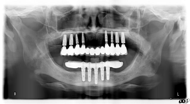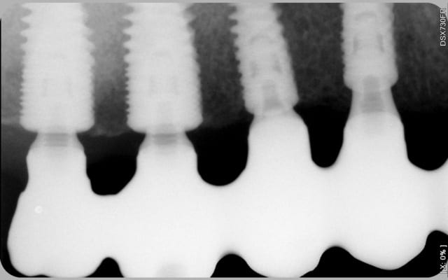 pour en revenir a la question initiale, épaisseur grande de tissus, donc beaucoup de résorption osseuse en antérieur, pour avoir un support de la lèvre optimal, tu aura une forte composante horizontal de la prothèse et le nettoyage sera plus difficile. Dans ces cas si pas de greffe osseuse j'opte pour de l'amovible.