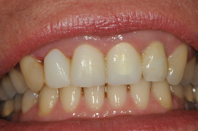 C'est dommage car ta partie est très bien gérée et au final entre les couronnes dento et implanto portées la luminosité n'est pas la même, est-ce que c'est le même type de couronnes ?