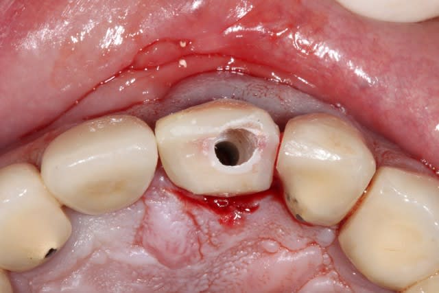 on constate que contrairement à la 11 surlaquelle il y a un affaissement de l'os vestibulaire