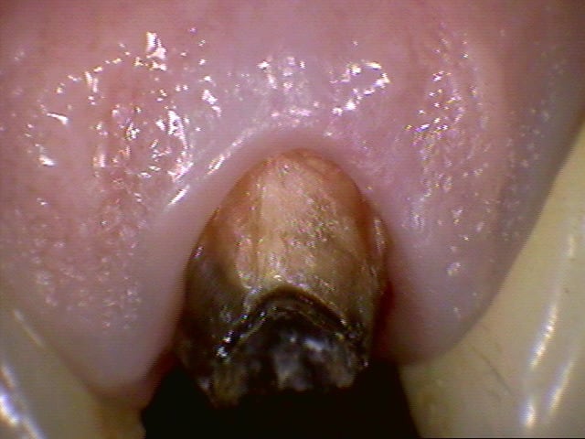 Je me lance pour le premier cas. Il s'agit d'une 22 réalisée en empress multi dont je joins les différents stades (initial, pilier, juste usinée, maquillée et glacée et après polissage). La 21 est naturelle et présente un angle composite, la 23 est recouverte d'une ccm.