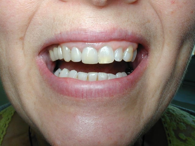 pour la fêlure marron, c'est un "maquillage" de mon prothésiste, le patient trouve que cela fait naturel, mais effectivement en voyant la photo, on aurait pu s'en passer ;)