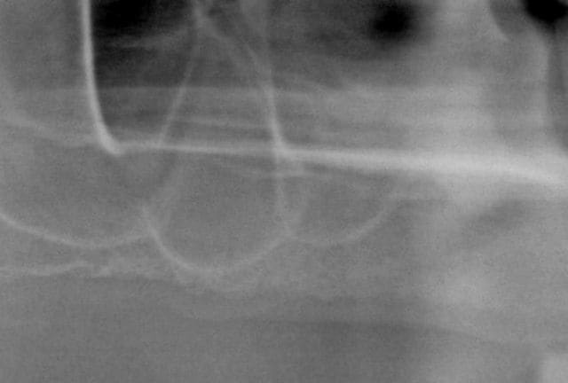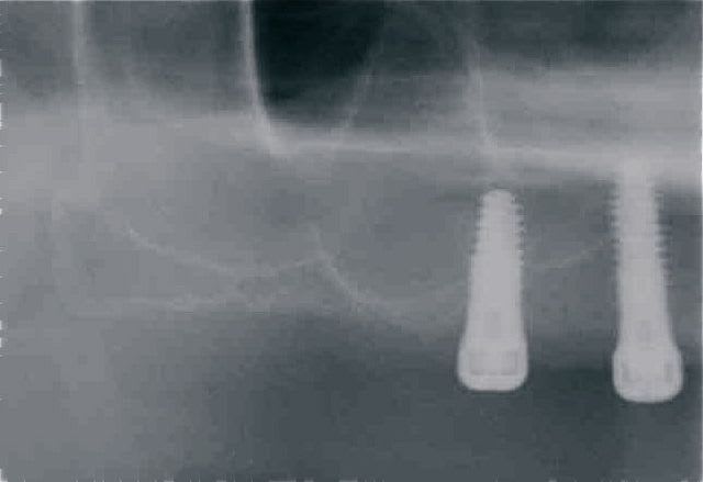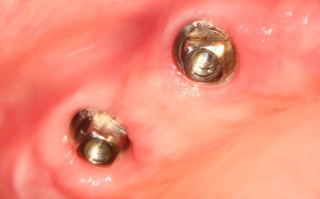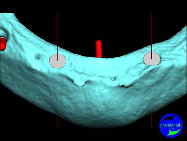 > posit, le cas 3, avec les deux implants symphysaire, sans doute pour locator, a