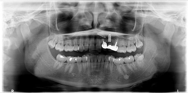 Très beau cas clinique pour montrer pourquoi il ne faut pas faire d'implant et encore moins d'implant solidarisé a des dents naturel chez un patient qui n'a pas fini sa croissance.