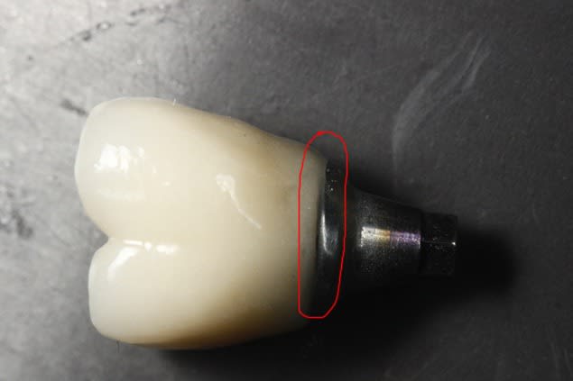 - la limite sur une couronne implantaire est souvent plus enfoui par choix ou par obligation qu'une couronne