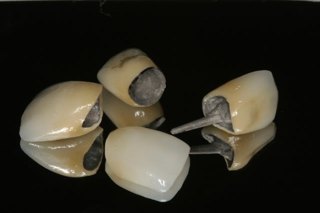 En ce qui concerne le choix entre ccc et ccm, il faut savoir que 90 % de mes couronnes sont en emax, mais dans le cas de racines extrêmement colorées ( ce qui est le cas ici)mon choix se porte sur des ccm classiques pour masquer ces colorations radiculaires que même une chape opaque sur emax ne peux dissimuler aussi bien qu'une ccm.