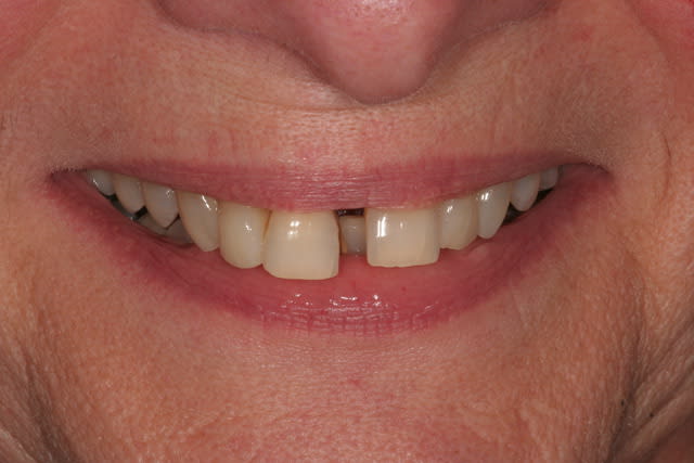 Elle est gênée par la position de sa 11 que des précédents dentistes lui ont meulé, plusieurs fois. Diastème qui n'existait pas il y a qq décennies...
