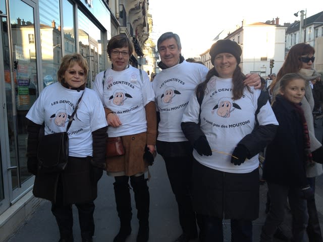 14 h 30, top départ. Les représentants syndicaux sont en tête de cortège. Derrière, on chante gentiment des requiem et des chansons de Noël arrangés pour l’occasion. « Marisol, les médecins en ont ras le bol, on va te mettre une camisole, pour toi ce sera le formol » Le mot « liberté » est sur toutes les lèvres. Liberté « de choix du praticien », « de prescription », « d’exercice » et « d’installation pour les jeunes ».