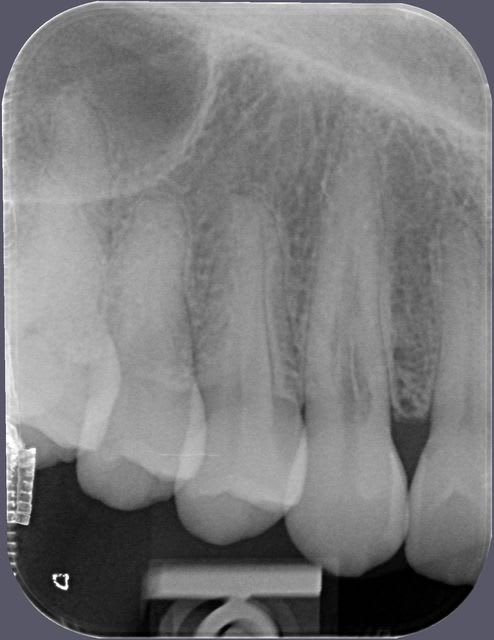On a donc un affaiblissement de la structure racinaire qui est dure a évaluer sur une radio 2D et qui peut condamner la dent (si la racines est percé par exemple.