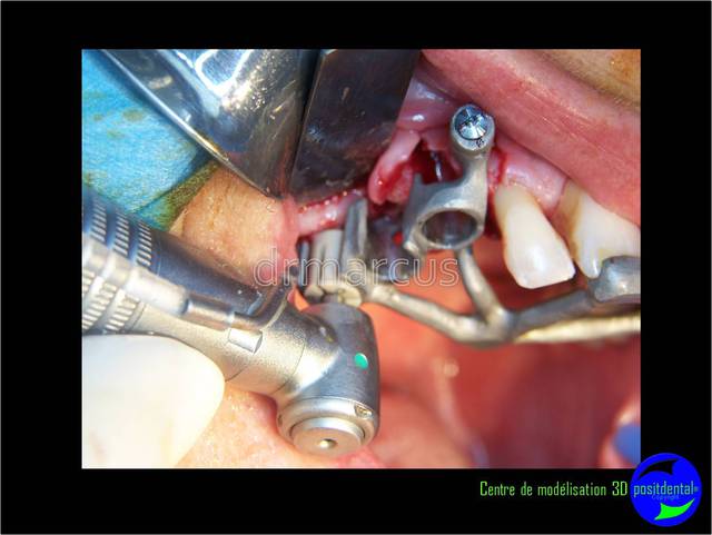 l utilisation d un guide chirurgical suppose un positionnement idéal et rigoureusement identique ! entre la radio et la chirurgie/ mais également lors de la mise en place du guide qui se fait après anesthésiste (gonflement des tissus).