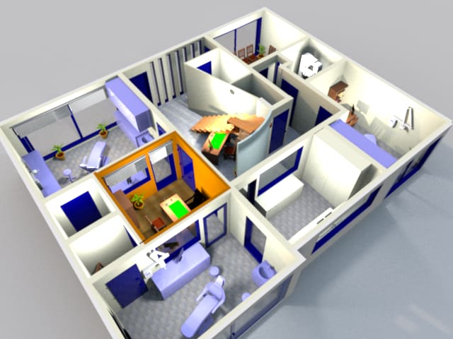 En fait, je cumule les casquettes... J'ai une spé en endo, donc mon cabinet de base est encombré par un microscope et un plateau mobile avec localisateur, moteur et matériel usuel. J'ai aussi une spé en prothèse d'où le mini-labo juste à portée de main. Enfin je viens de rajouter (au bout de trois ans...) l'implanto dans les cordes à mon arc, donc bloc à proximité (et j'ai beaucoup aimé le principe du Dr Russe, si certains connaissent, qui a vitré l'espace entre son bureau et sa salle d'op pour pouvoir expliquer aux patients en leur montrant les lieux sans les "déstériliser")...