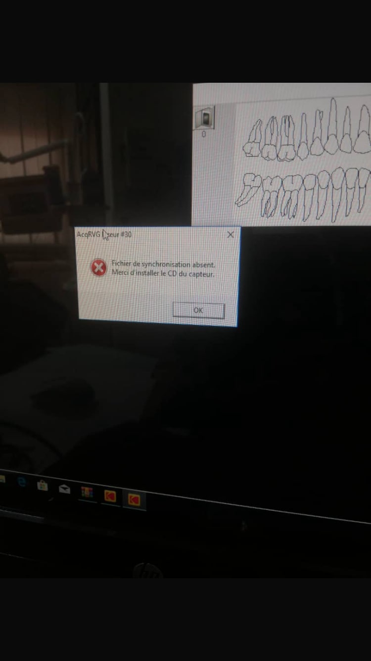 Problème CD d’installation Capteur Kodak RVG 6000 résolue mais après installation marque problème de synchronisation en branchant celui ci sous Windows 10 .
