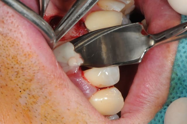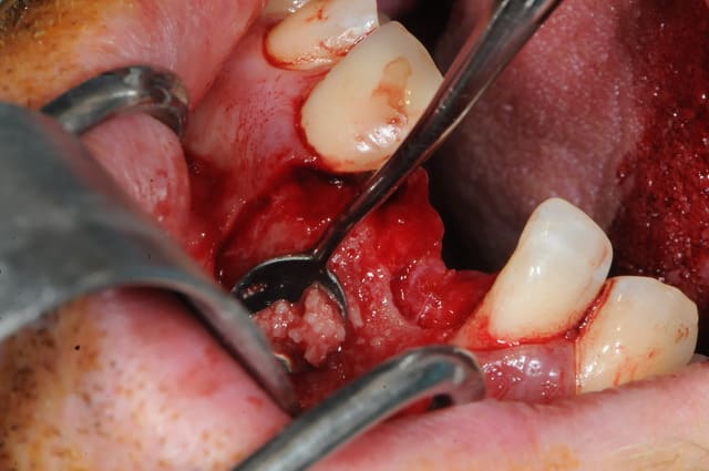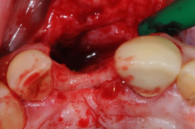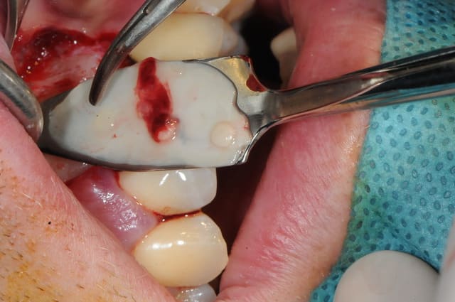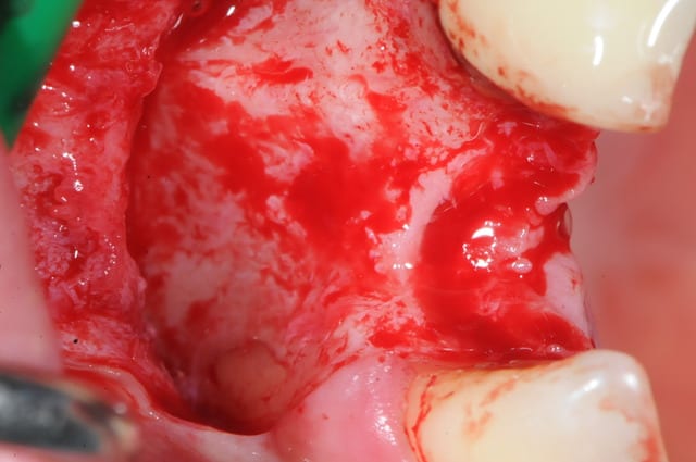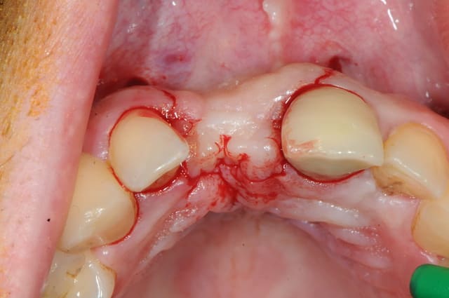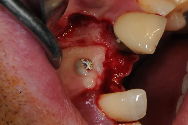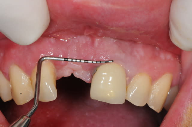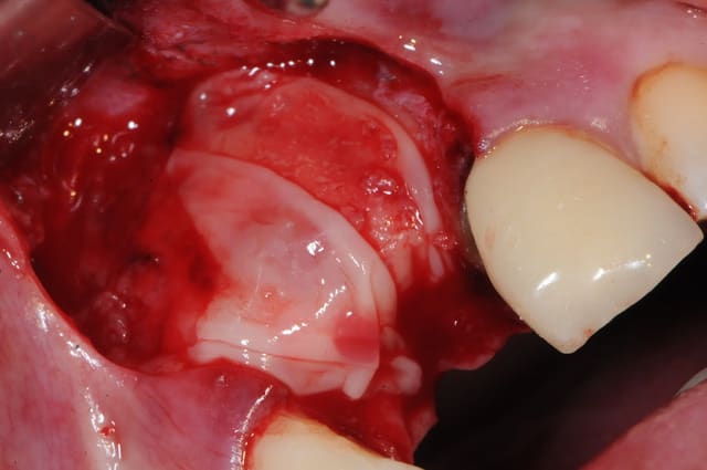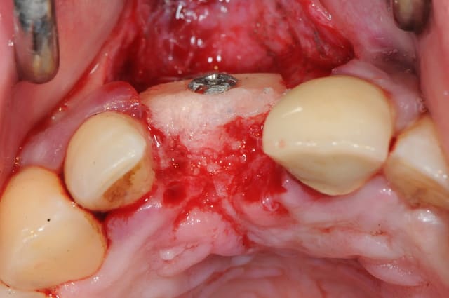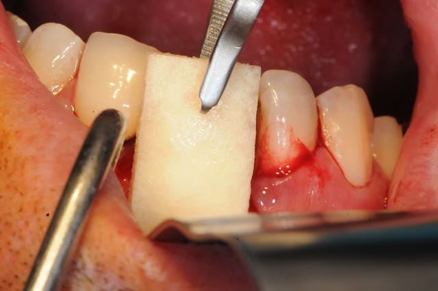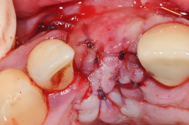 il est aussi possible d'utiliser par exemple le mucograft en deuxième intention pour recréer une bande de gencive attachée dans un tel cas.