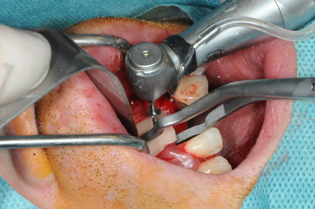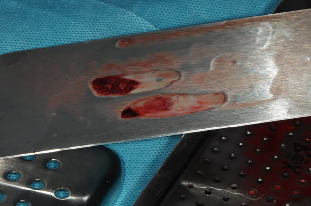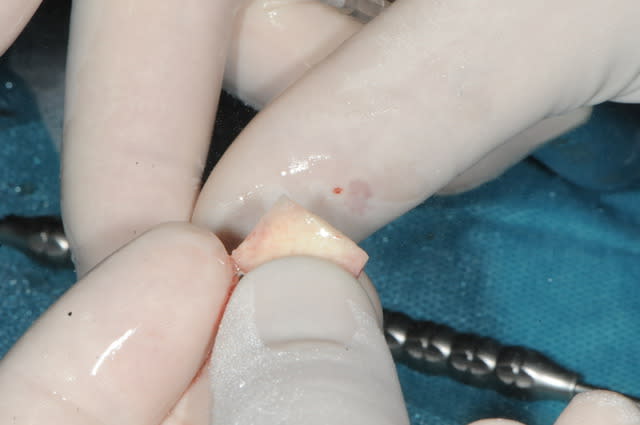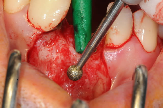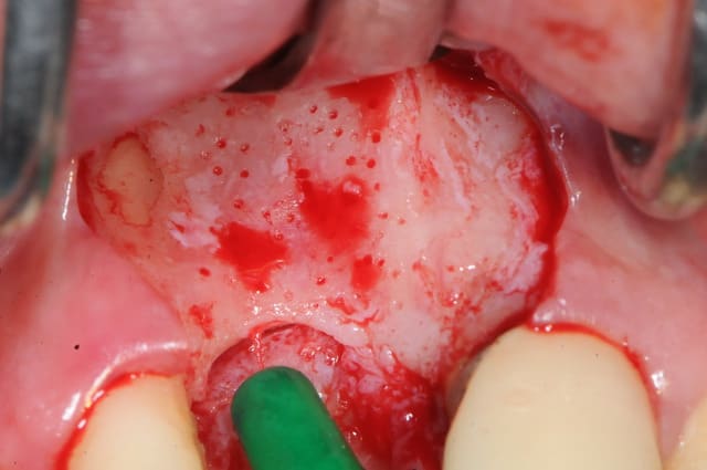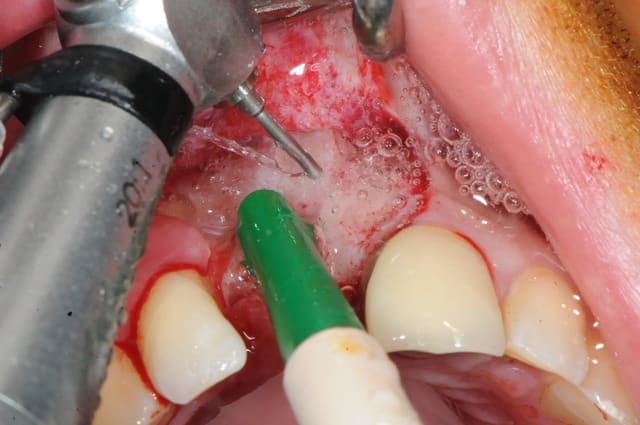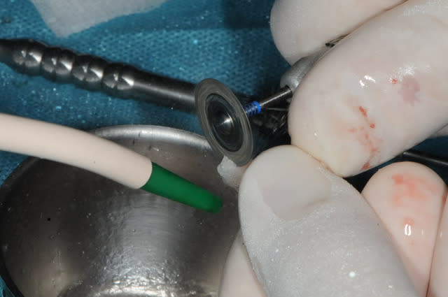 5-6-7-8 préparation de la surface à greffer : abrasion osseuse et perforations multiples pour l'apport sanguin.