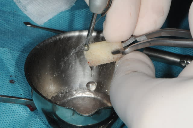 2-3- hydratation du greffon avec du serum phy (1/2 heure)