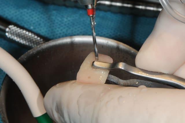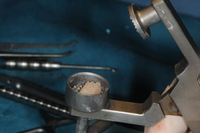 la préparation du bloc osseux se fait avec un procédé spécifique.