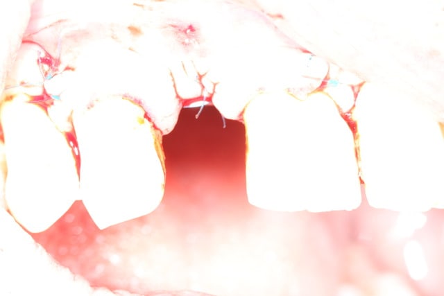 tu fais la mise au point sur une dent (zone blanche, claire donc...)