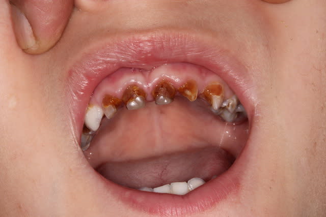 De toutes façons le cas va se régler tout seul : les parents pensent que c'est normal, ils ne vont probablement pas faire soigner leur enfant. Ca demanderait du temps, de la motivation, et surtout ça les mettrait face à la triste réalité : ils sont coupables de n'avoir pas pris soin des bouches de leurs enfants (ce qui à mes yeux frise la maltraitance). Ils refuseront de faire face à ça à mon avis et préfèreront continuer à croire que c'est héréditaire et normal.