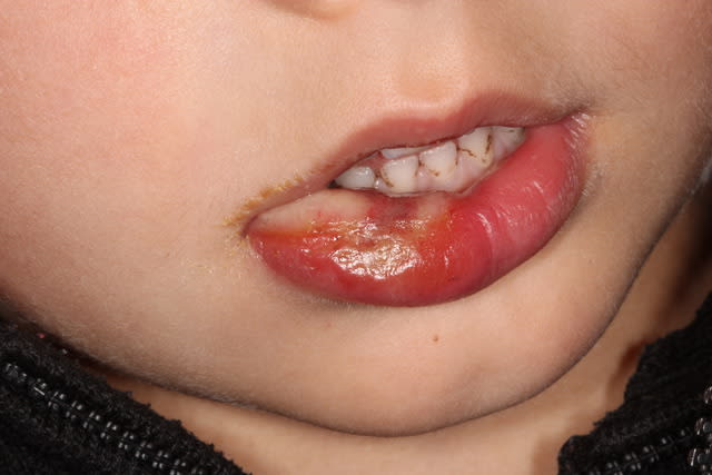 si la photo peut vous aider à illustrer vos propos pour expliquer aux petits patients qu'il ne faut pas jouer avec sa lèvre anesthésiée...