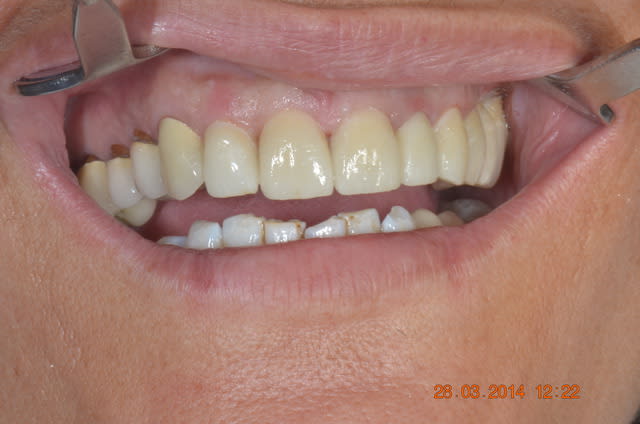 j'ai oublié de dire que c'est un travail posé en 2005 . revue il y a quelques semaines . même le petit bridge mandibulaire n'a pas bougé malgré les attachements du stelite