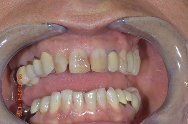 -A noter, ça se voit mal sur les photos, que 11 12 13 sont des couronnes 3/4, la limite palatine se situe 3mm au-dessus de la gencive.