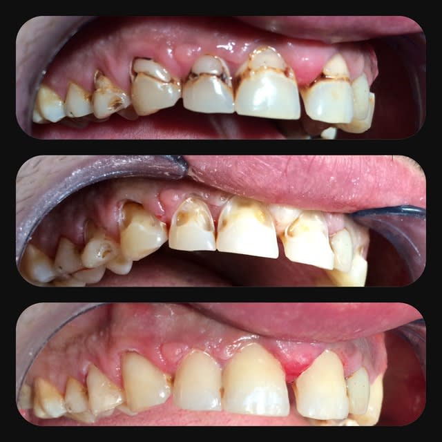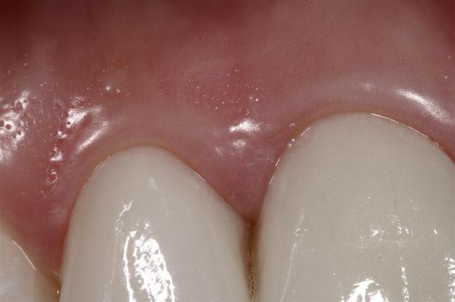 par contre comme moi la patiente à veilli et on a une récession gingivale de 1mm qui expose la racine.