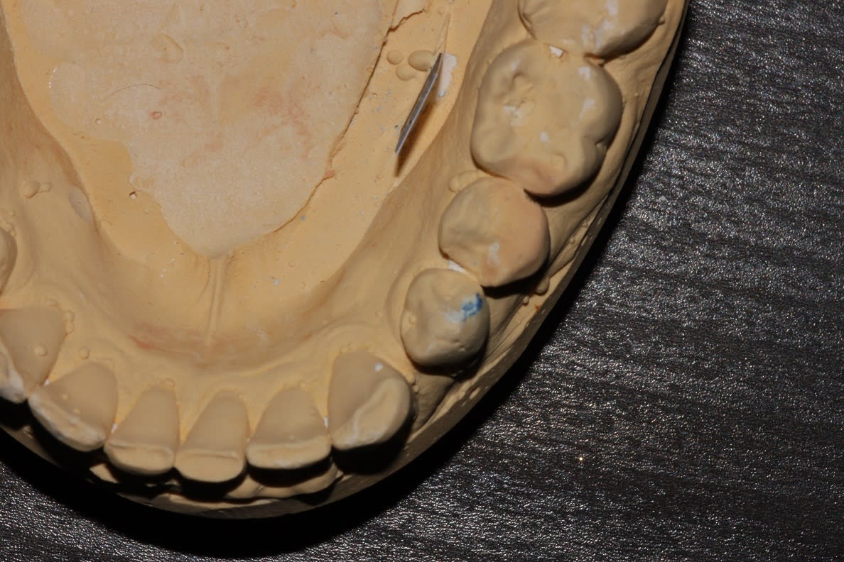 Pour Enlaye: 17 et 27 ont été retouchées avant le second platre, sur la cuspide palatine. Ce sont d'anciennes coiffes métal.