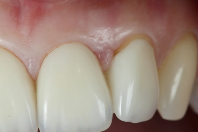 par contre comme moi la patiente à veilli et on a une récession gingivale de 1mm qui expose la racine.