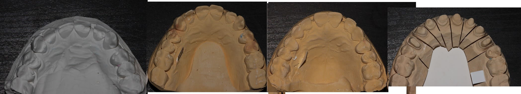Pour Enlaye: 17 et 27 ont été retouchées avant le second platre, sur la cuspide palatine. Ce sont d'anciennes coiffes métal.