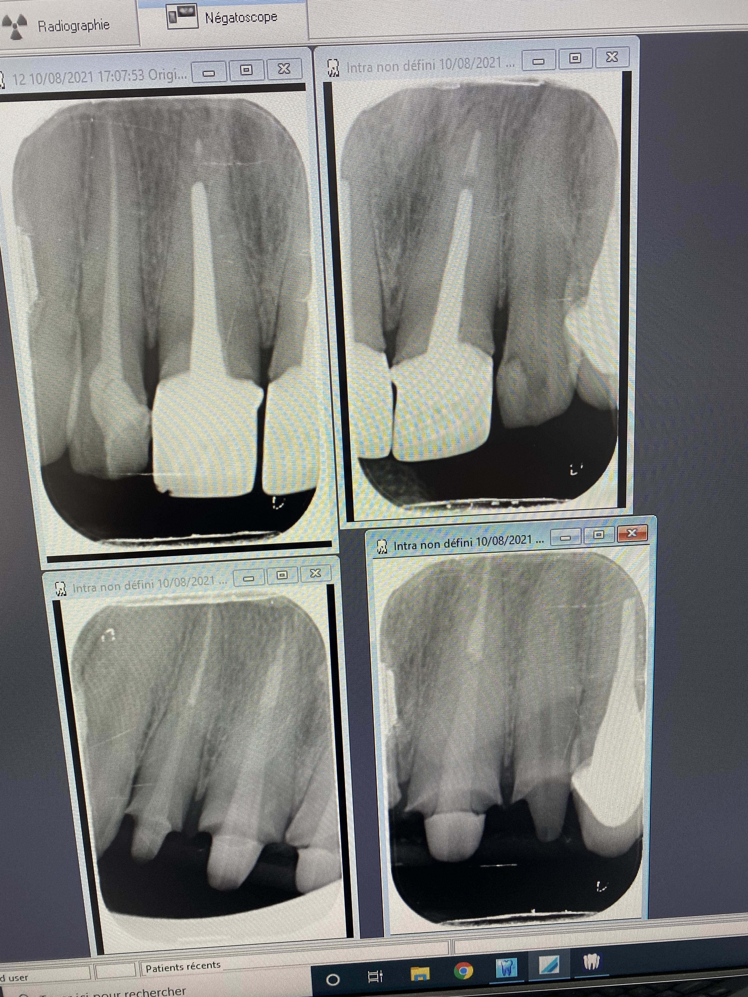 Evidemment, aucun signe douloureux musculaire, ATM parfaitement fonctionnelles, mais une 37 qui ne réagit ni au froid, ni au fraisage, et finalement ni à l'ouverture de chambre.